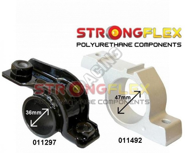 Tvrdší silentbloky dodá vašemu autu lepší kontrolu i jízdní stabilitu hlavně při průjezdech v zatáčkách. Firma StrongFlex vyrábí tyto komponenty z kvalitnějších materiálů než jsou z prvovýroby, dodává 2 tvrdosti a to základní červenou 80 ShA, která je o něco tvrdší než oem provedení a potom žlutou sport o tvrdosti 90 ShA, která se už hodí spíše pro sportovní účely. V galerii fotek je vidět použití jednotlivých silentbloků