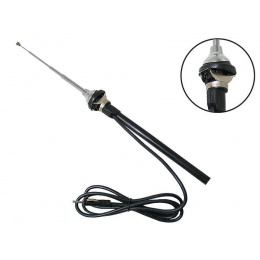 Teleskopická anténa určená na príjem rozhlasového signálu v automobile. Na montáž do blatníka. dĺžka prútu: 0-94 cm dĺžka kábla: 120 cm sklon antény: nastaviteľný konektor DIN prevedenie: chróm