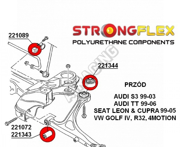 Audi TT 1999-06 StrongFlex sestava silentbloků jen pro přední nápravu 6 ks obsahuje: