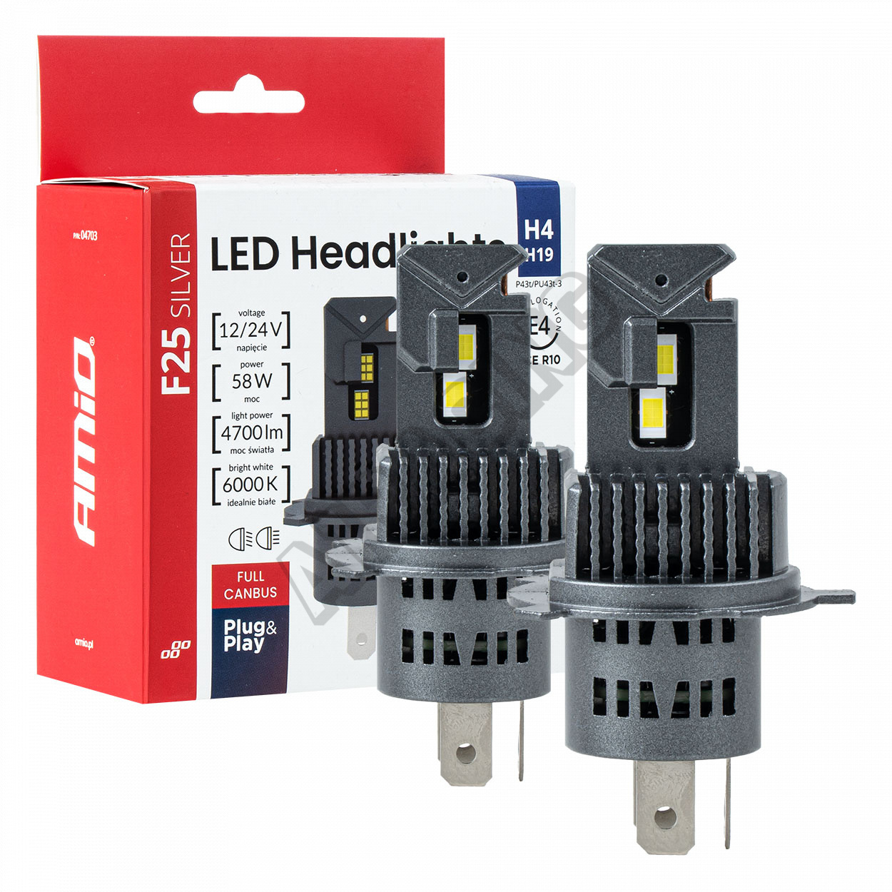 Automobilové LED žiarovky F25 SILVER FULL CANBUS 58W H4 H19 12V 24V AMIO-0470333.17 EUR