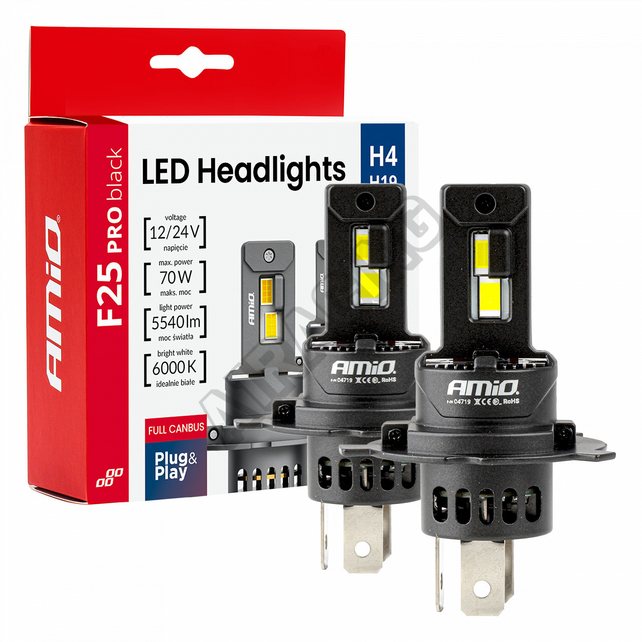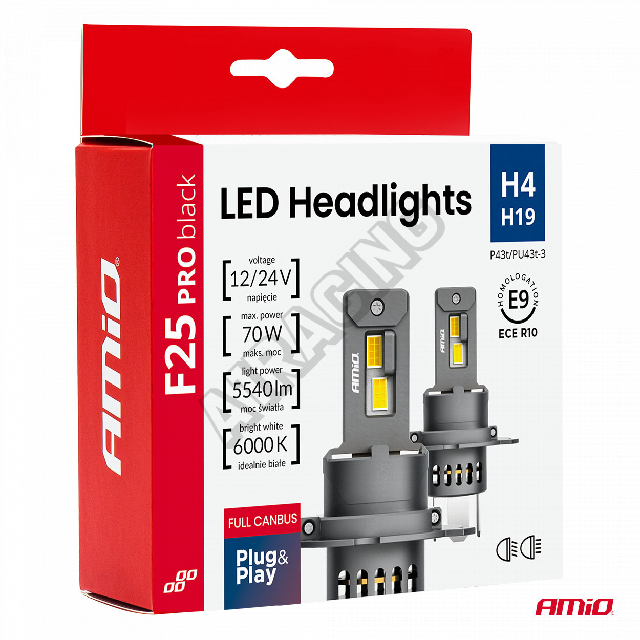 Automobilové LED žiarovky série F25 PRO BLACK FULL CANBUS H4 H19 70W 12V 24V