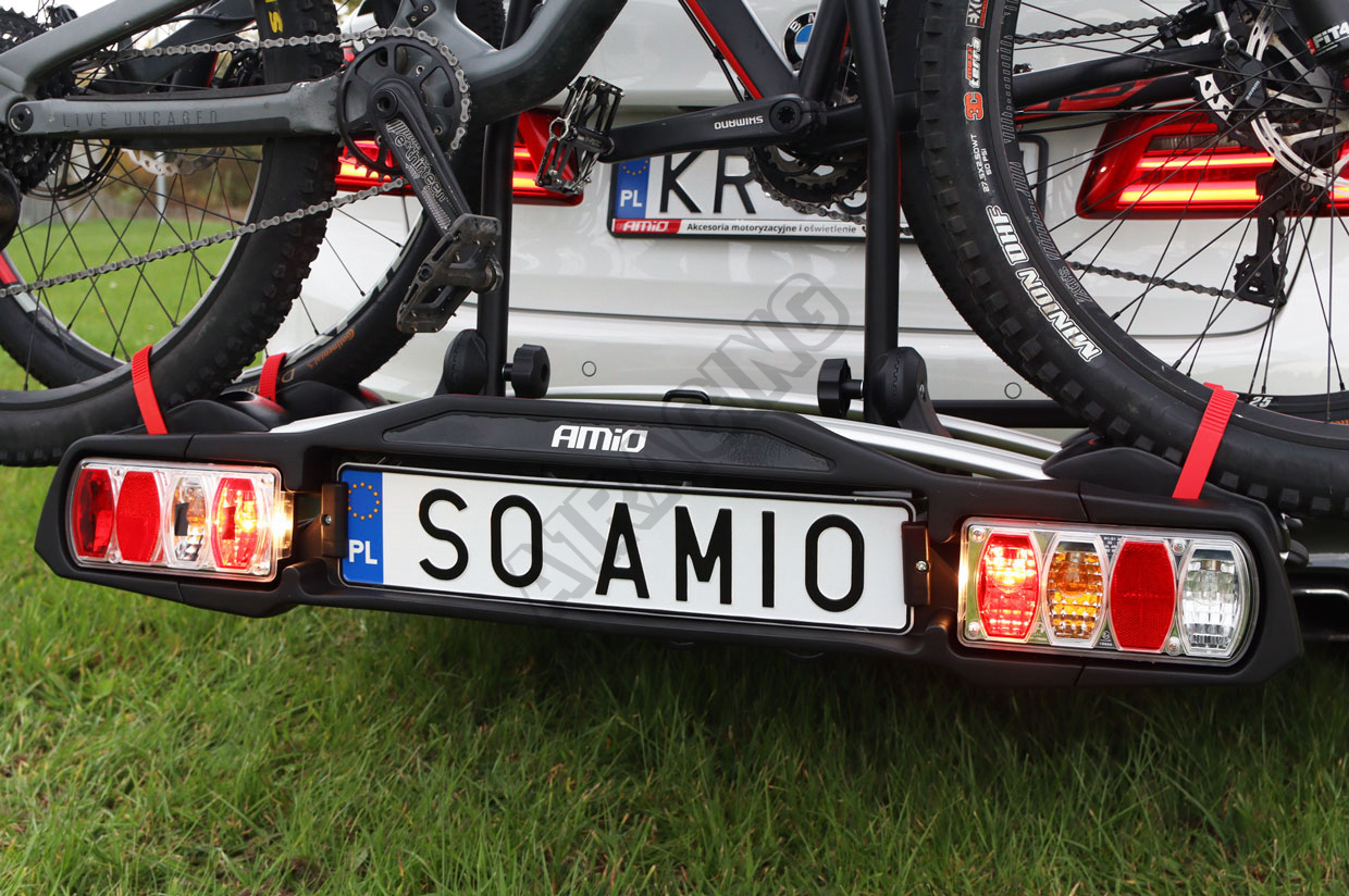 Robustná sklopná platforma montovaná na ťažné zariadenie pre prepravu jedného až dvoch bicyklov.