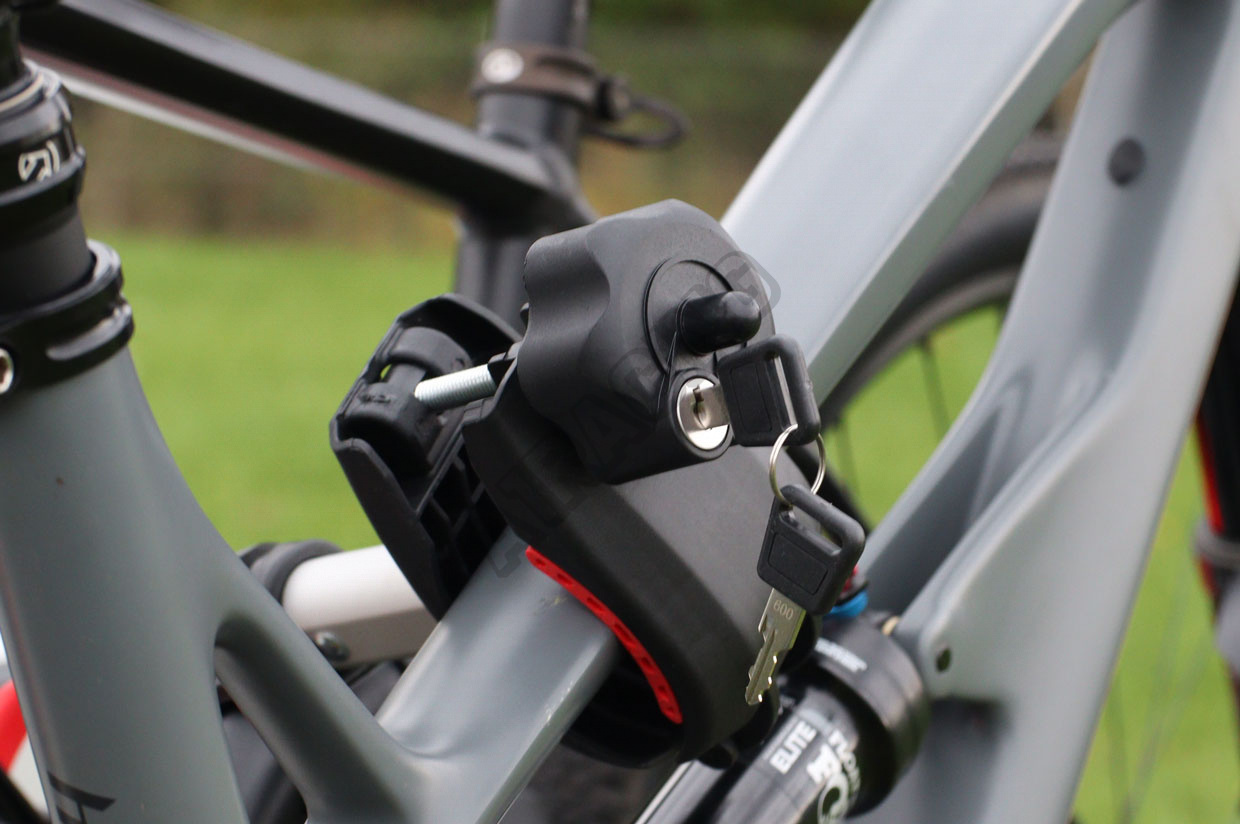 Veľmi pohodlný systém montáže kolies na nosiči - stačí odpojiť úchyty, preložiť cez kolesá, zaistiť zámkom s kľúčom a hotovo
