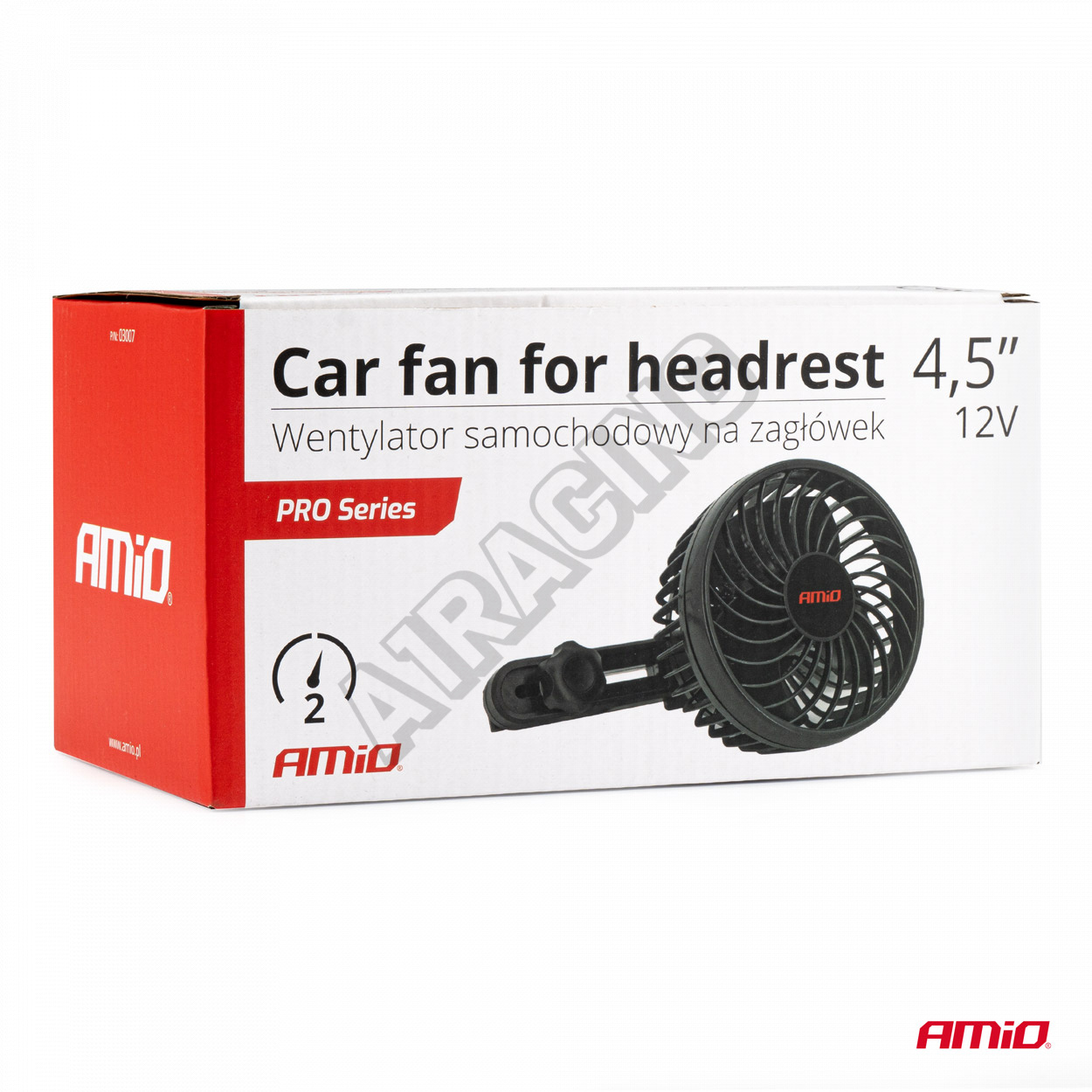 AMiO PRO VENTILÁTOR AUTOVENTILÁTOR NAPÁJANÝ Z AUTONABÍJAČKY 12V 11,5 CM PRIPEVNENÝ NA OPIERKU HLAVY