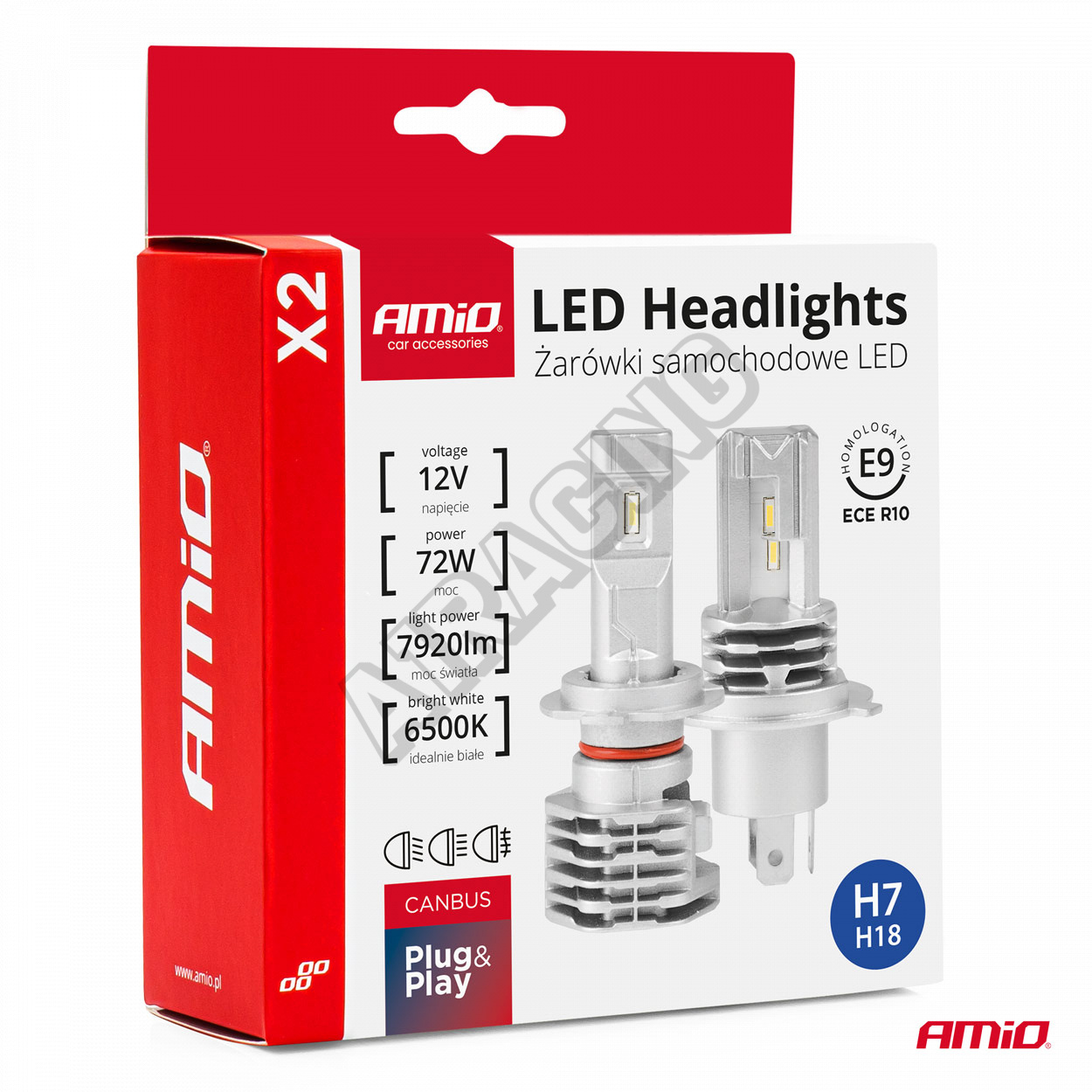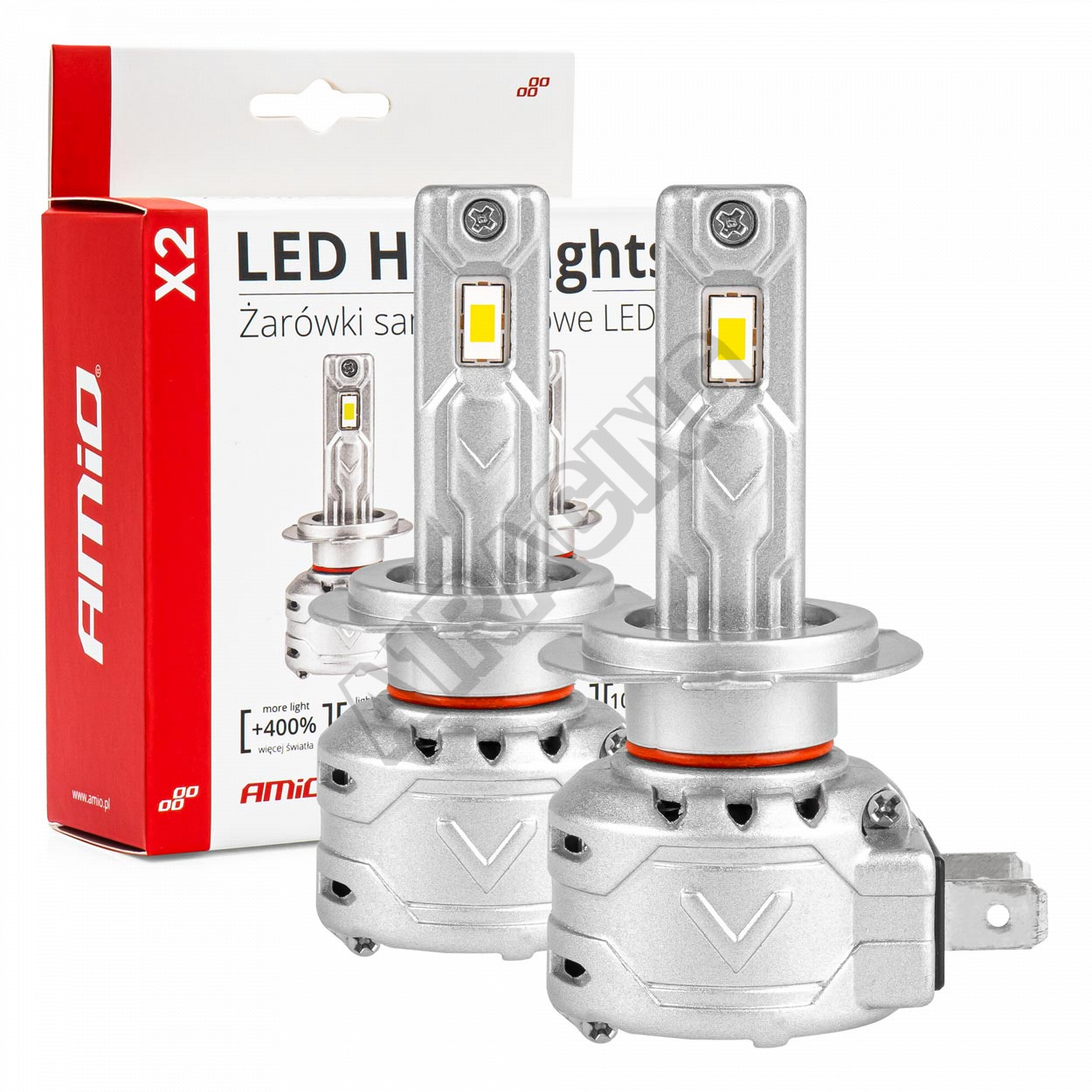 Žiarovky LED H7 AMiO série X2 sa vyznačujú veľmi vysokou kvalitou prevedenia. Navrhovaná sada vyžaruje jasnejšie a koncentrovanejšie svetlo, čo umožňuje lepšiu viditeľnosť cesty za podmienok obmedzeného osvetlenia, ako je súmrak, hmla alebo dážď. Svetelné zdroje vyrobené v technológii CSP sú efektívnejšie v procese premeny elektrickej energie na viditeľné svetlo v porovnaní s tradičnými halogénovými žiarovkami. LED žiarovky sú odolnejšie voči otrasom a vibráciám, čo znamená, že majú dlhšiu životnosť než halogénové žiarovky.