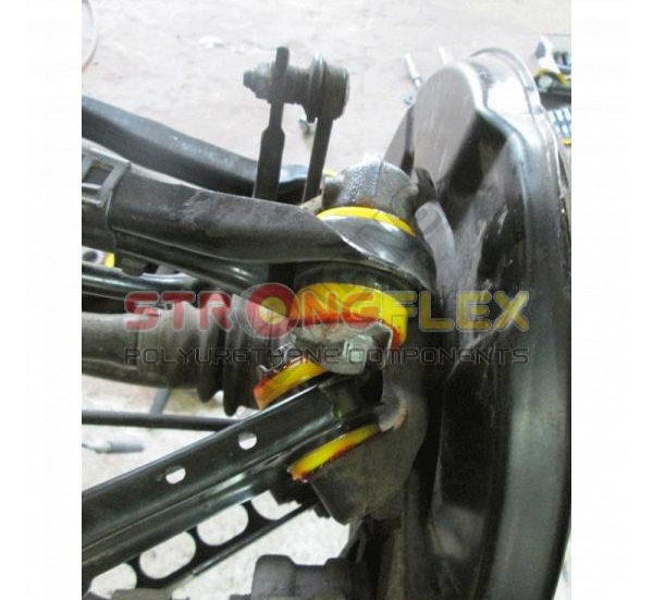 Tvrdšie silentbloky dodá vášmu autu lepšiu kontrolu aj jazdnú stabilitu hlavne pri prejazdoch v zákrutách. Firma StrongFlex vyrába tieto komponenty z kvalitnejších materiálov ako sú z prvovýroby, dodáva 2 tvrdosti a to základnú červenú, ktorá je o niečo tvrdšia ako oem prevedenie a potom žltú šport o tvrdosti 90 ShA, ktorá sa už hodí skôr na športové účely. V galérii fotiek je vidieť použitie jednotlivých silentblokov