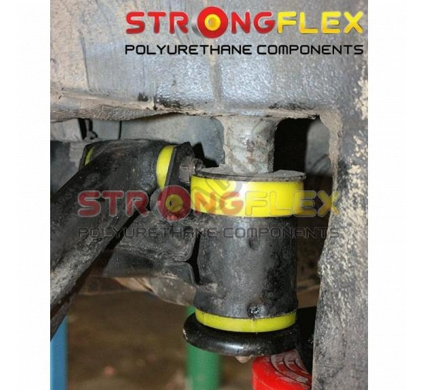 Tvrdšie silentbloky dodá vášmu autu lepšiu kontrolu aj jazdnú stabilitu hlavne pri prejazdoch v zákrutách. Firma StrongFlex vyrába tieto komponenty z kvalitnejších materiálov ako sú z prvovýroby, dodáva 2 tvrdosti a to základnú červenú, ktorá je o niečo tvrdšia ako oem prevedenie a potom žltú šport o tvrdosti 90 ShA, ktorá sa už hodí skôr na športové účely. V galérii fotiek je vidieť použitie jednotlivých silentblokov