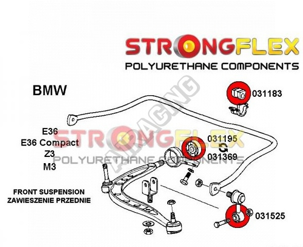 BMW rad 3 (E36) Compact StrongFlex Sport (tvrdosť 90ShA) kompletná zostava silentblokov na celé auto obsahuje :