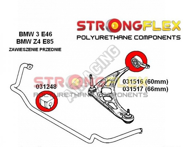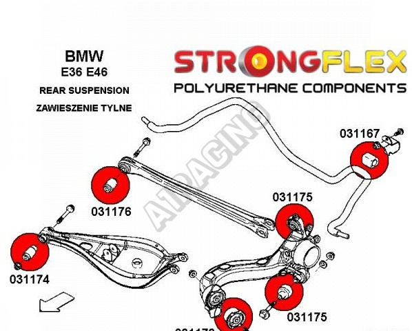 BMW rad 3 (E46) StrongFlex Sport (tvrdosť 90ShA) kompletná zostava silentblokov na celé auto obsahuje :