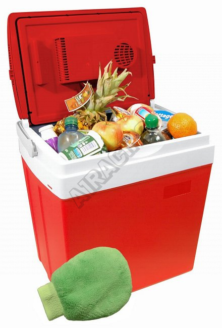 Prenosný chladiaci box s možnosťou ohrevu, napájanie 12V a 220V, vnútorný objem 30 litrov. Displej s vnútornou teplotou, napájacie káble uschované v praktickej uzatvárateľnej schránke priamo vo veku chladiaceho boxu.