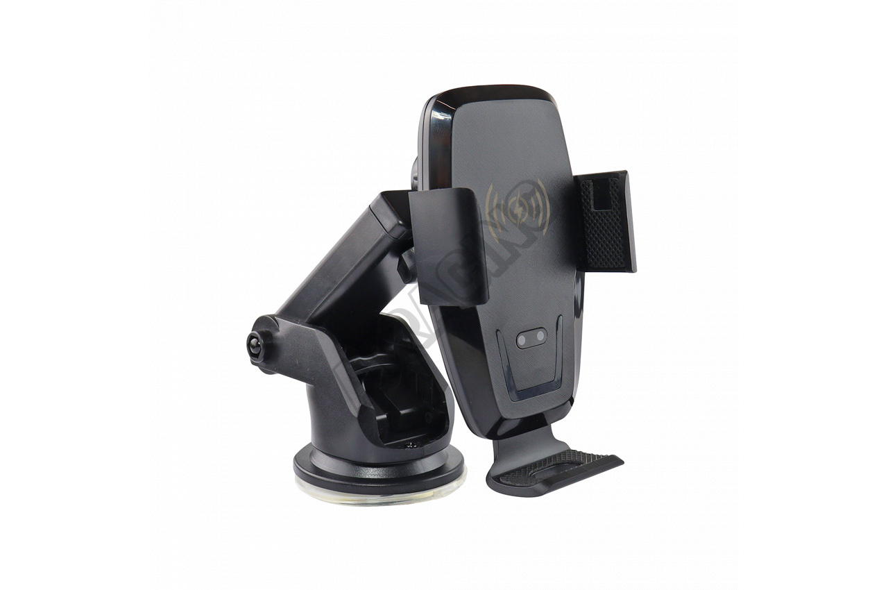 Automaticky uzamykateľný držiak so senzorom priblíženia a silnou indukčnou nabíjačkou. Možnosť montáže na sklo pomocou priloženého nastaviteľného ramena s prísavkou.