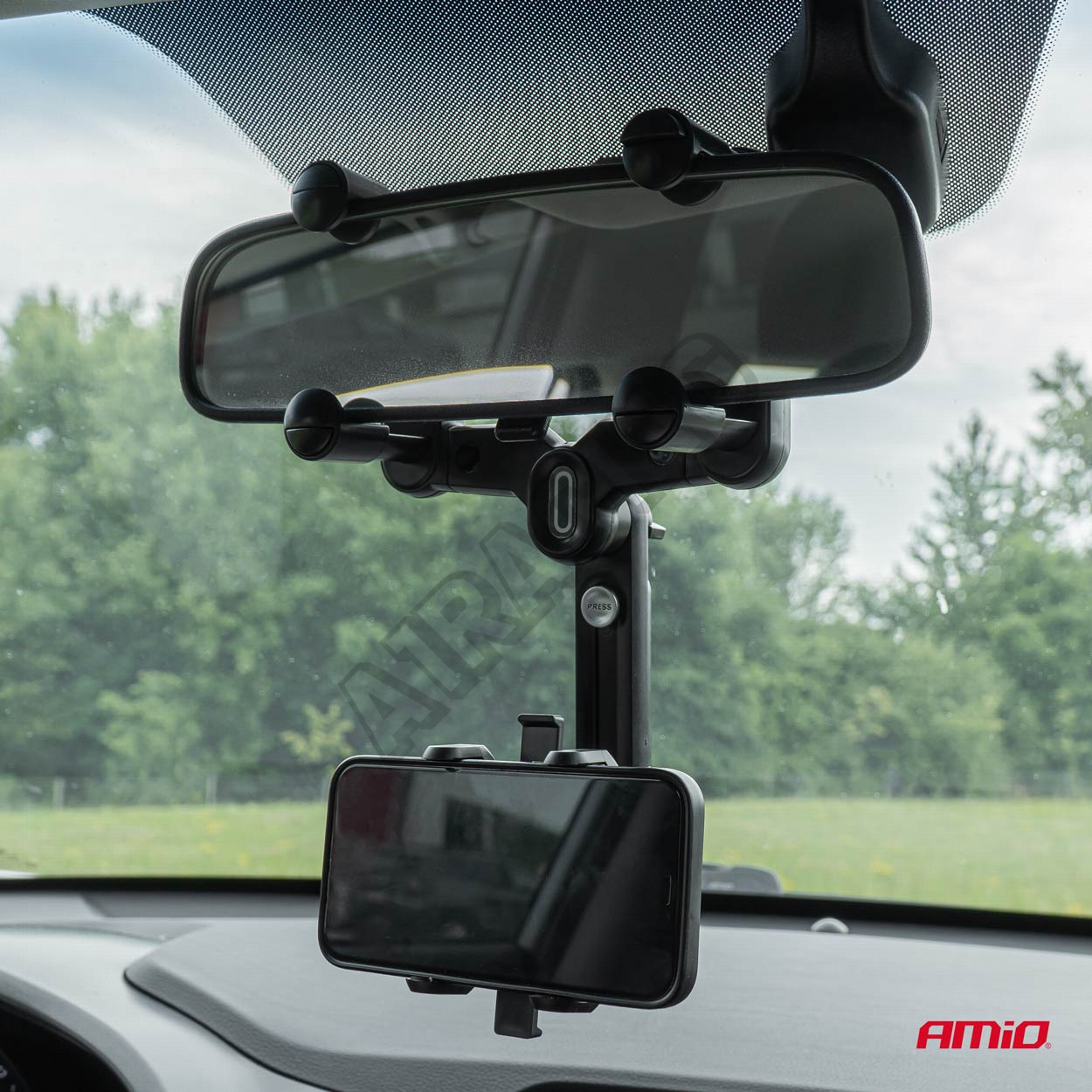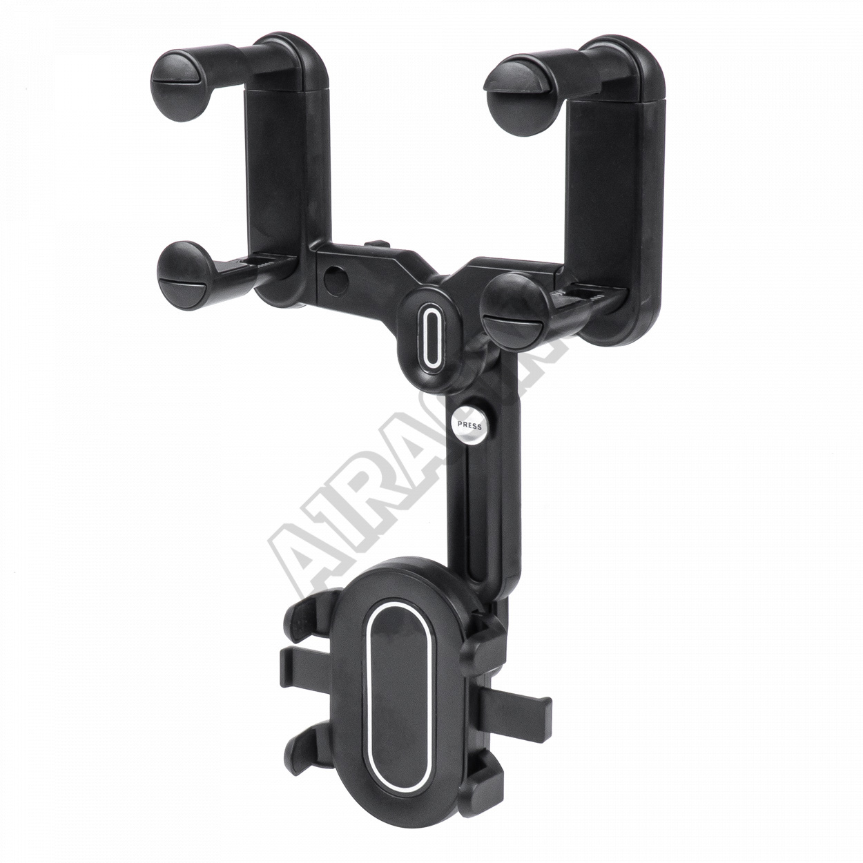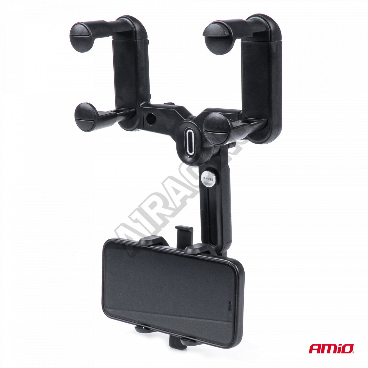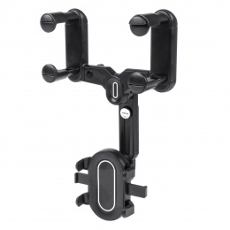 Držiak na telefón do auta na spätné zrkadlo stabilne udrží zariadenie a neobmedzí viditeľnosť vodiča. Navyše držiak disponuje nastaviteľnou hlavicou otočnou o 360 stupňov a protišmykovými vložkami vo vnútri upínacích čeľustí.