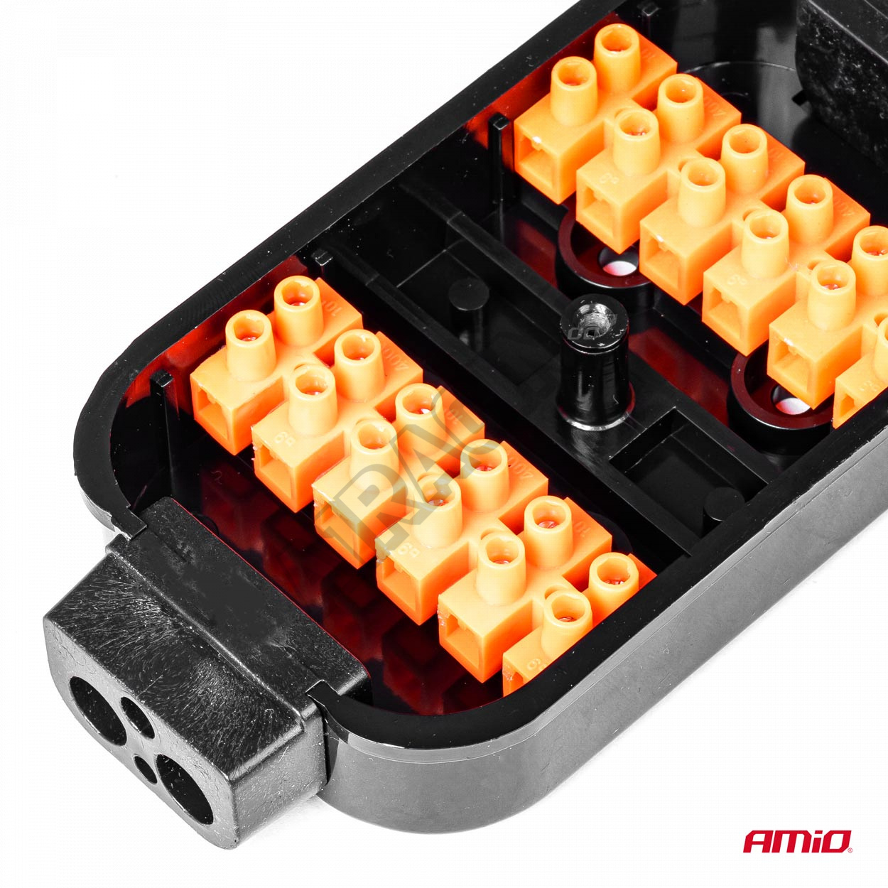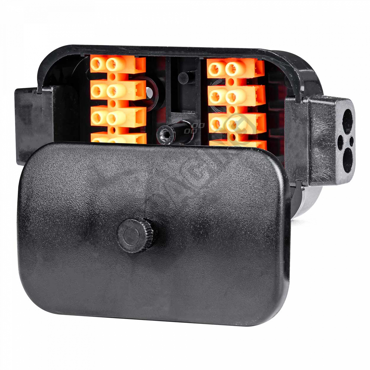 Krabica elektrickej inštalácie prívesu vybavená svorkovnicou. Hermetická krabica - skrutkovacia. Max