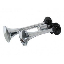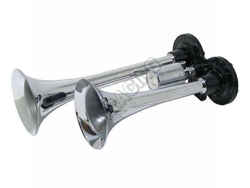 Fanfáry - chróm 2 trubky 12V / 24V Vzduchová fanfára s elektromagnetickým ventilem 12/24V. Nutno