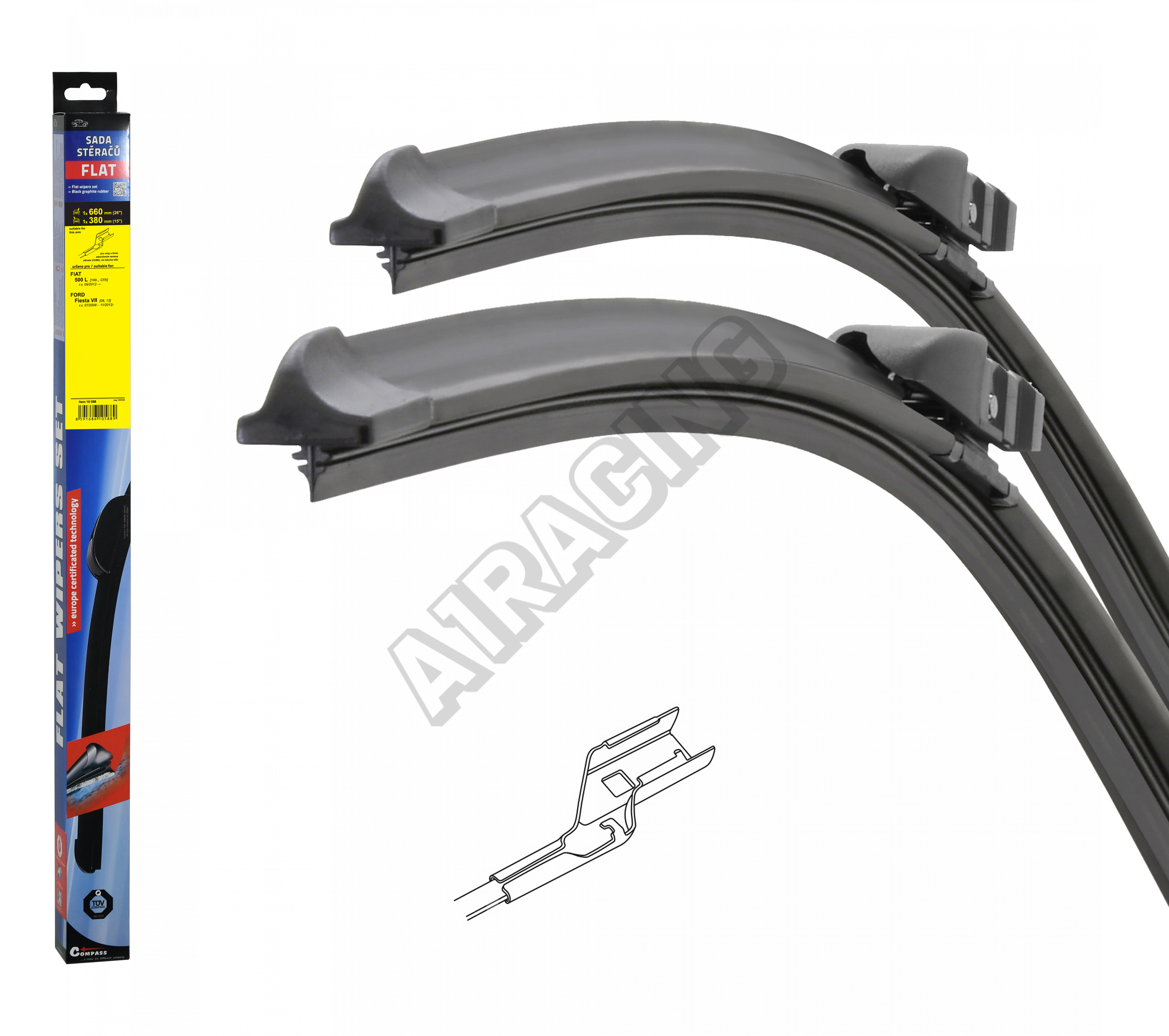 Ford Fiesta VII 2008-... přední stěrače FLAT sada 2 ks 660/380 mm (jezdec, spolujezdec)Katalógové číslo: P78486X