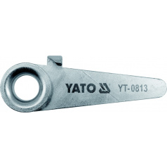 Stahovák sponek čalounění. Stahovák má délku 200 mm a šířku 14 mm. Štěrbina pro kolíky s rozměry 8