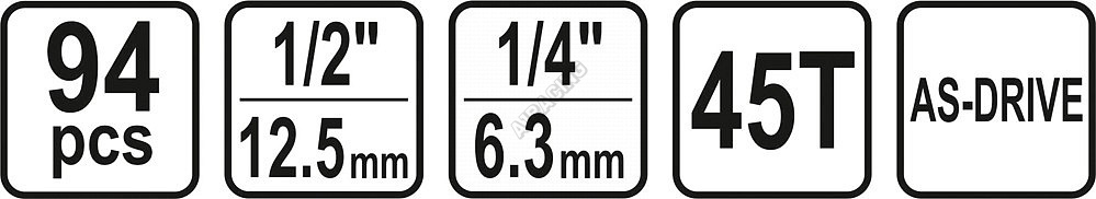 - nástavce 1/2": 10; 11; 12; 13; 14; 15; 16; 17; 18; 19; 20; 21; 22; 23; 24; 27; 30; 32 mm