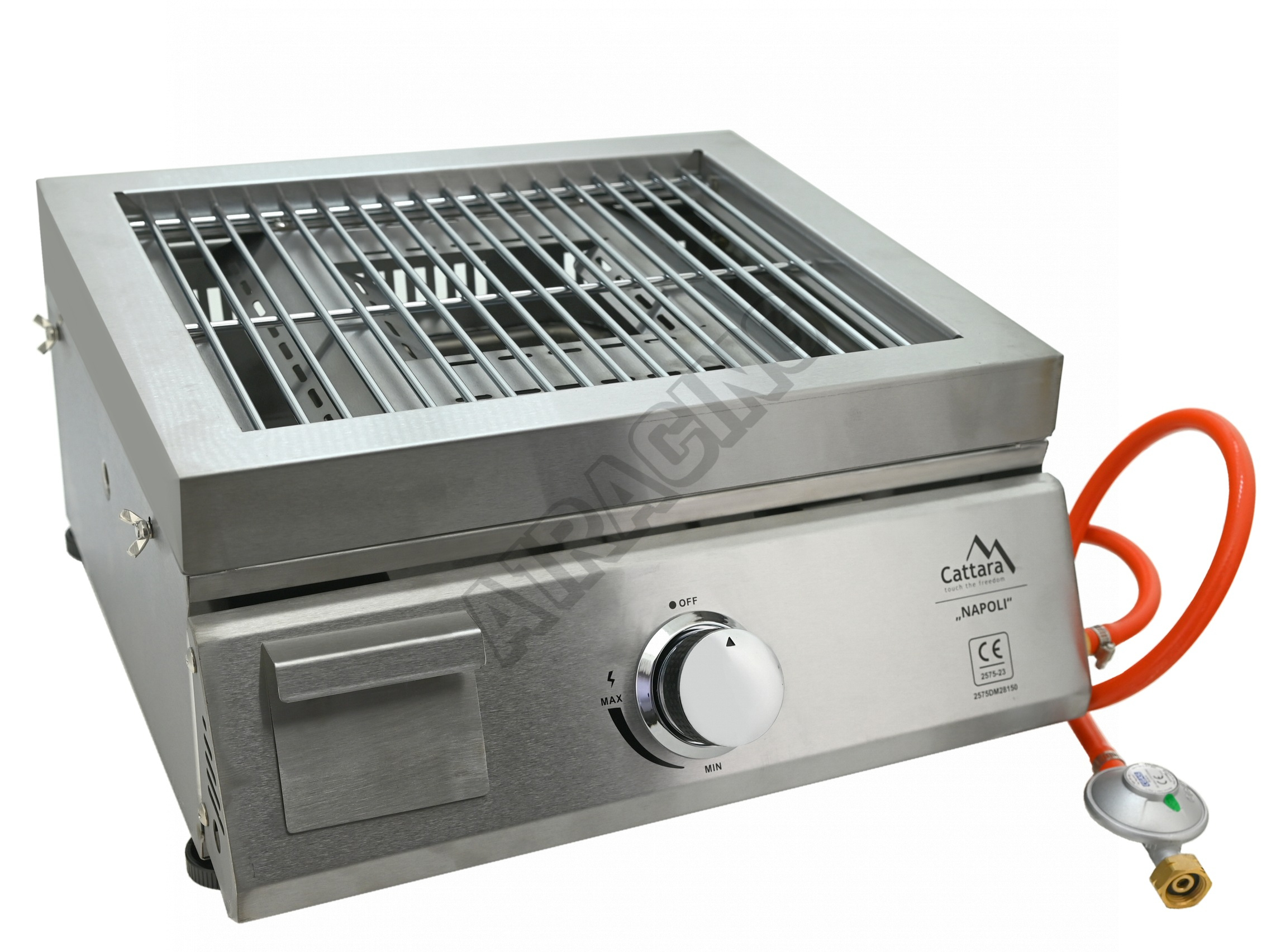 Gril NAPOLI je volně stojící plynový grill, který je možné postavit na stůl, na zahradní kuchyňskou linku, nebo jiný pevný podklad. Volitelná část modulární zahradní kuchyně Cattara TORINO. Nabízí konstrukci klasického grilu s mřížkou, grilovací desku a pizza pec s možností snadné výměny.