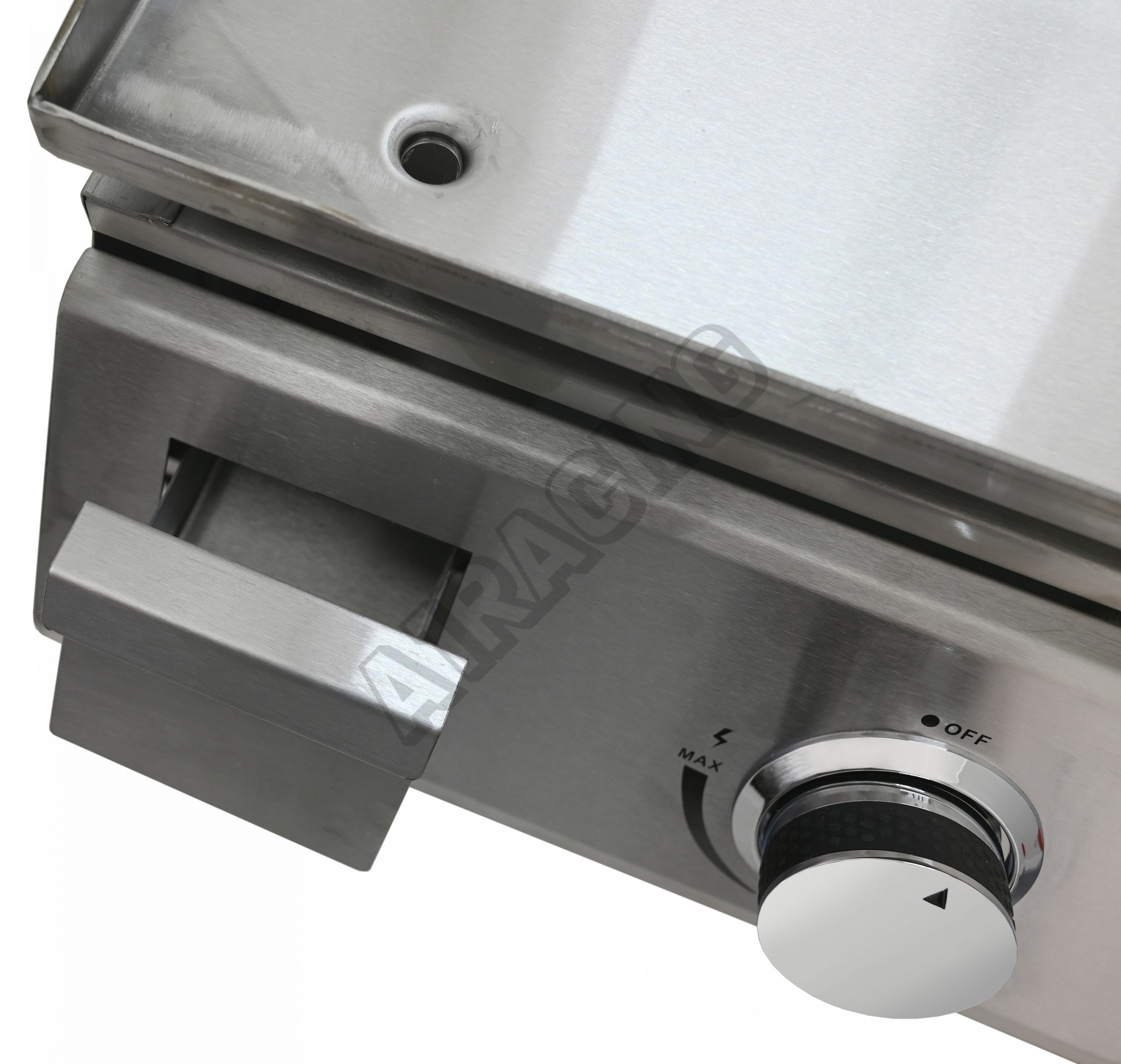 Další možností je nasadit grilovací desku z masivního ocelového plechu s plochou o rozměrech 50 x 38 cm. Deska je obdobou pro domácí „Teppanyaki“. V levém rohu je deska opatřena otvorem umístěným přesně nad vyjímatelným šuplíkem grilu. Samotný šuplík lze použít na skapávání sósu a šťáv z pokrmů, případně pouze pro skapávání tuku a s tím spojené udržení grilu v čistotě.