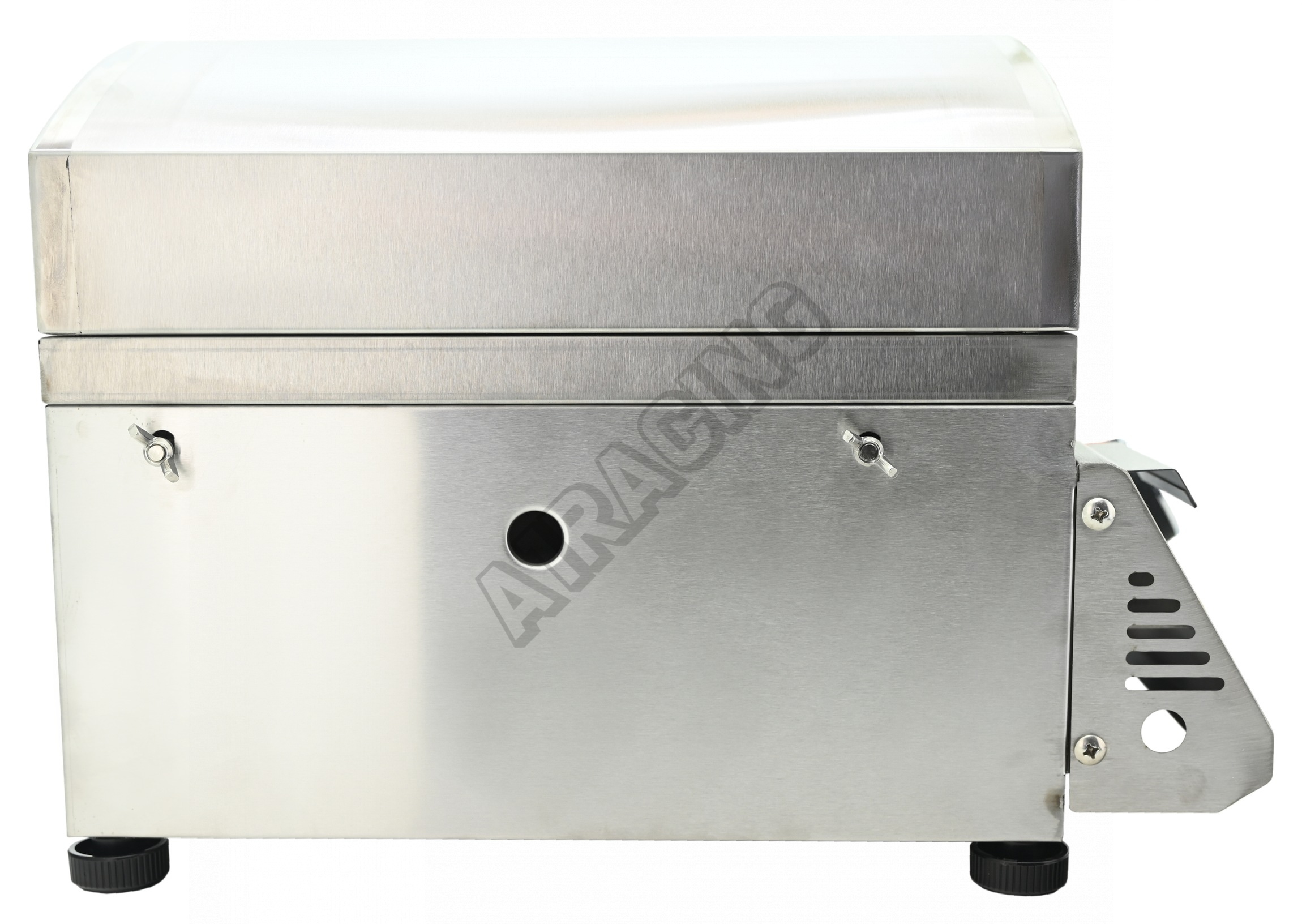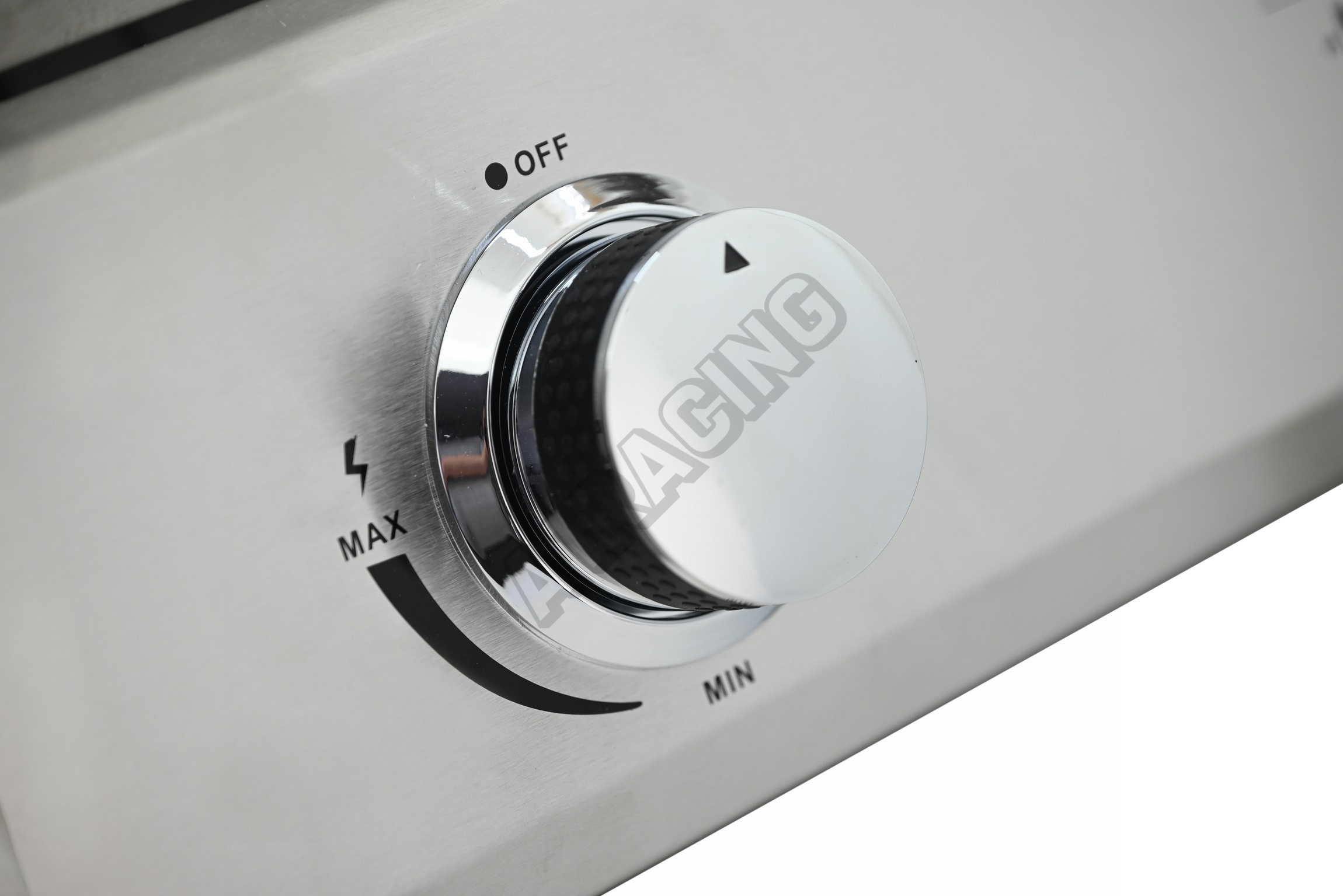 Celý grill je konstruován z nerezové oceli. Vyměnitelné vrchní díly jsou jištěné pomocí křídlatých šroubů. Pro snadnou údržbu je gril na zadní straně opatřen vysouvací poličkou pro zachytávání skapávajícího tuku. Na boku je gril opatřen přívodem plynu s 1m hadici a regulačním ventilem.
