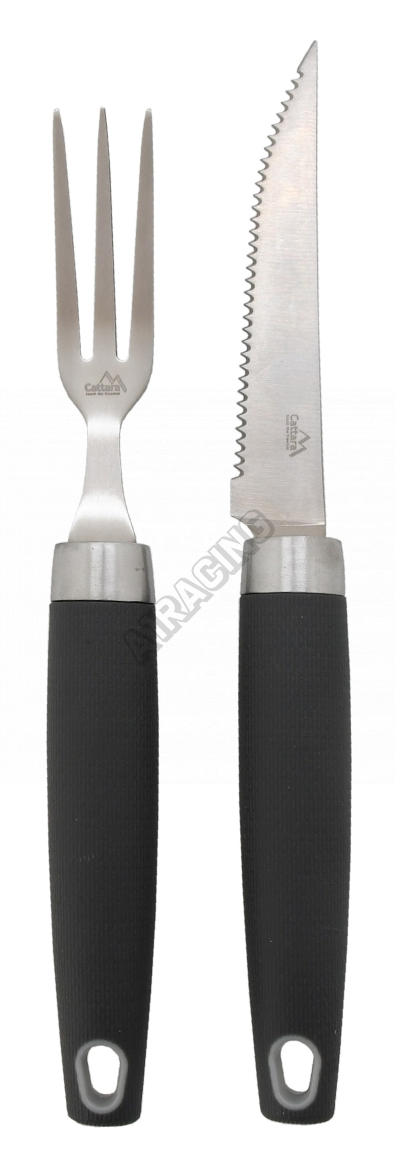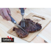 Sada se skládá z 3 hroté vidličky s rozměry 24 x 2,2 x 2 cm a z vroubkovaného nože na steaky s rozměry 25,5 x 2,5 x 2 cm.