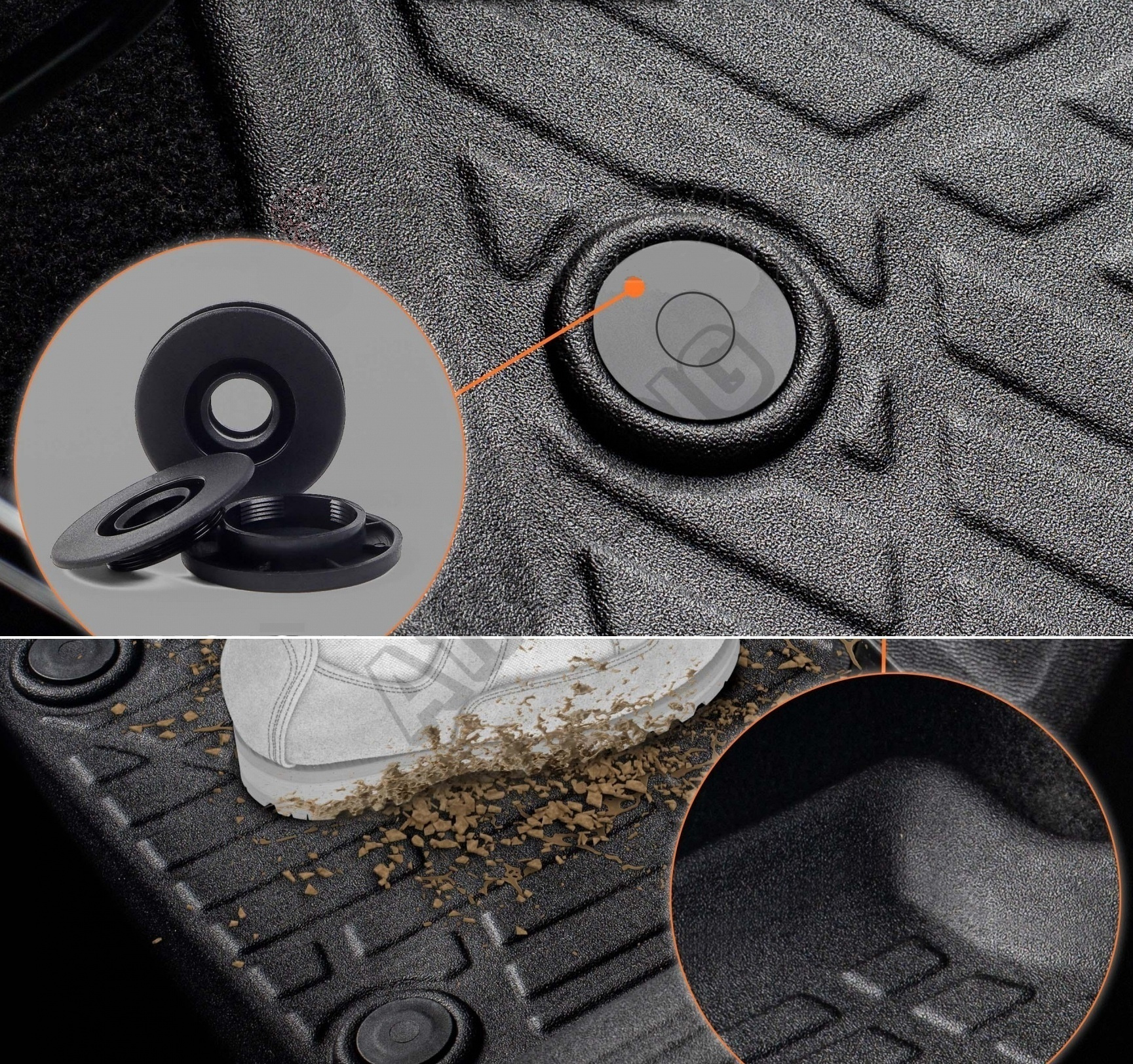 Vďaka vysokým okrajom poskytujú účinnú ochranu proti trvalým škvrnám na podlahovej krytine vášho vozidla. Ľahko sa čistí vodou.