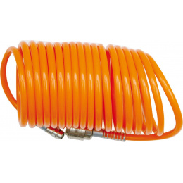 Flexibilní spirálová hadice na stlačený vzduch, která má na obou koncích rychlospojky pro snadné a rychlé připojení a odpojení kompresoru a pneumatického nářadí. Po použití se hadice automaticky svine na minimální velikost. Tím se vyhnete rozvinování a opětovnému navinování hadice.