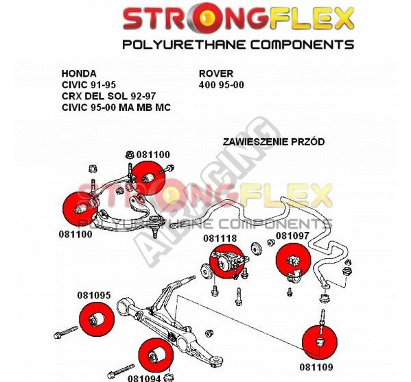 Honda CRX 1992-97 Strongflex Šport zostava silentblokov len pre prednú nápravu 14 ks