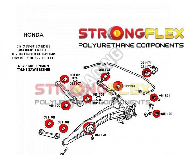 Honda CRX 1992-97 StrongFlex Sport zostava silentblokov len pre zadnú nápravu 22 ks obsahuje: