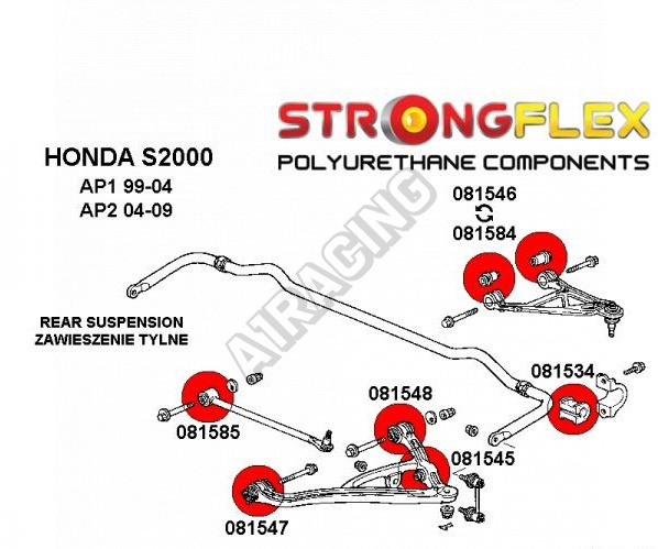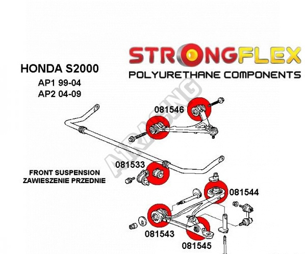 Honda S2000 StrongFlex (tvrdosť 80ShA) kompletná zostava silentblokov na celé auto obsahuje :