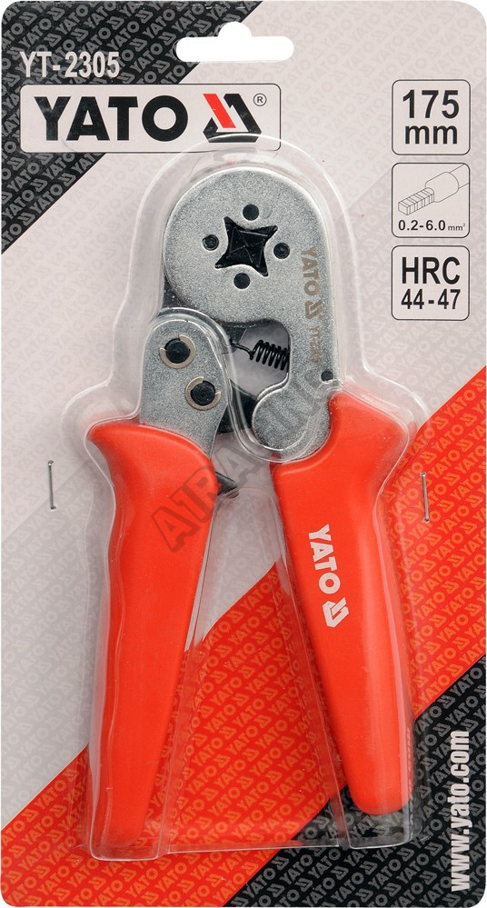 Kleště YT-2305 na krimpovací konektory, s plastovými držadly. • možnost lisování spojovacích objíme