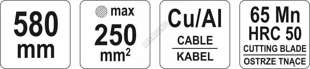 Pákové štípací kleště pro Al a Cu dráty do průměru 250 mm2. Kleště délky 580 mm jsou opatřeny břity