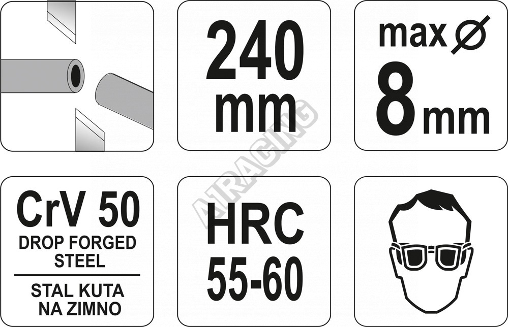 Zhotovené z CrV-50 oceli 55-60 HRC. Oplastované rukpojeti zabezpečují míru komfortu při práci.