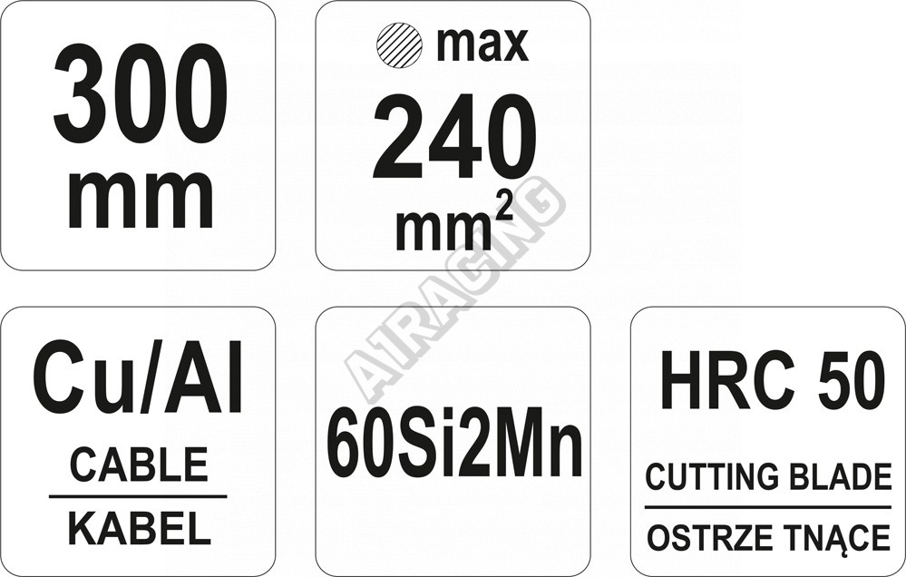 Štípací elektrikářské kleště pro Al a Cu vodiče a více žilové kabely do průměru 240 mm2. Nůžky jsou vhodné i pro stříhání hadic.