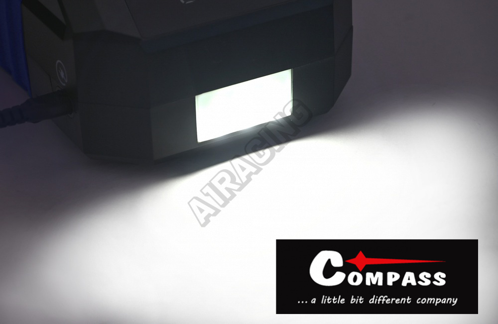 Čelní strana kompresoru je navíc opatřena LED osvětlením, doplněným o červené SOS světlo.