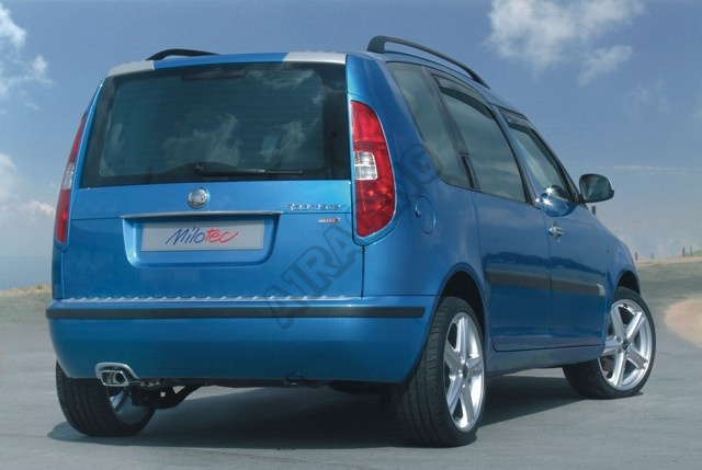 Koncovka výfuku je vyrobena z ušlechtilé oceli, orámování pak ze stříbrného matného ABS s možností přímé montáže nebo nalakování do barvy vozu (ilustrační foto, Roomster TDI).