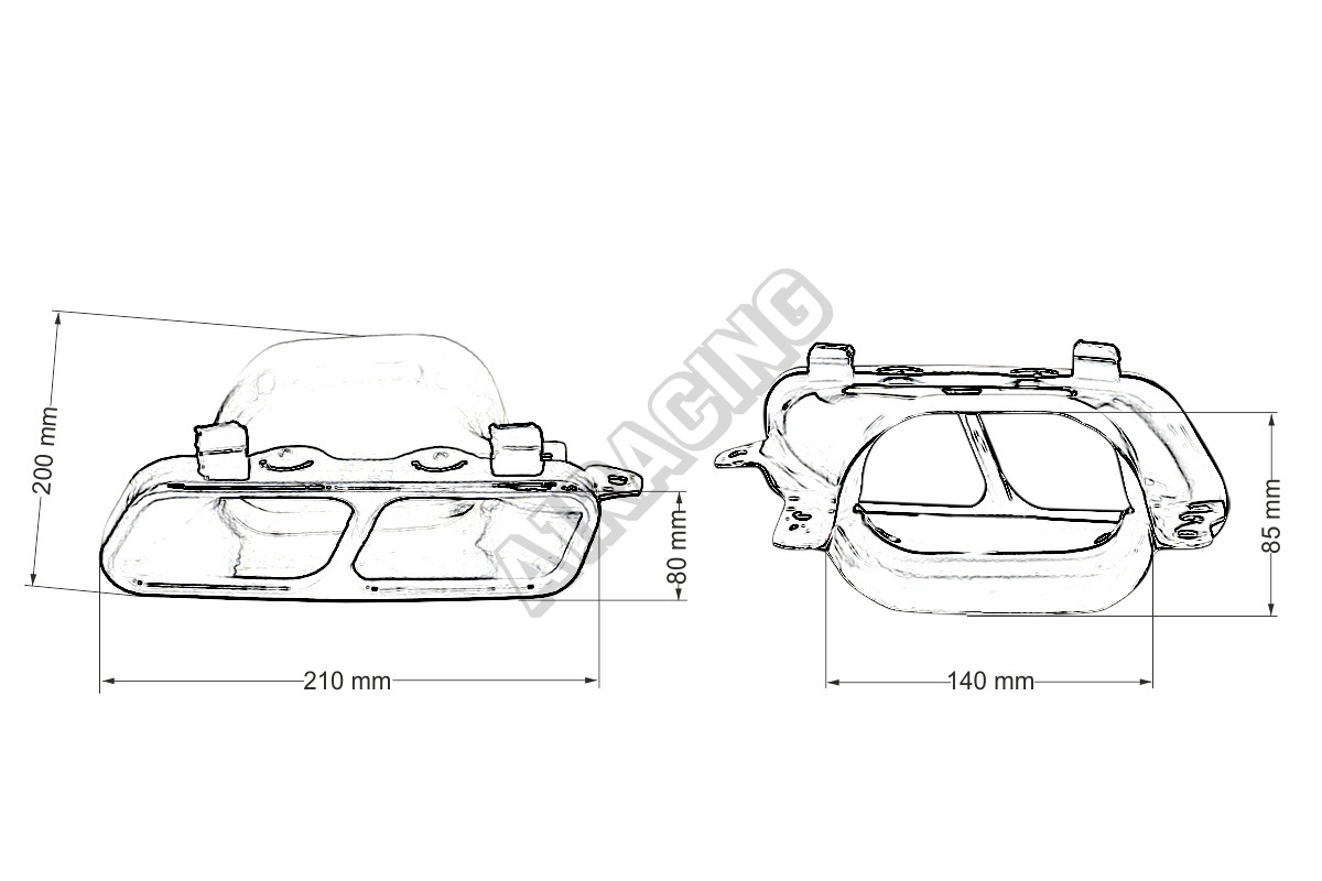 Koncovka tlmiča 210x80mm vstup 140x85mm Mercedes A45 S600 Black Sada