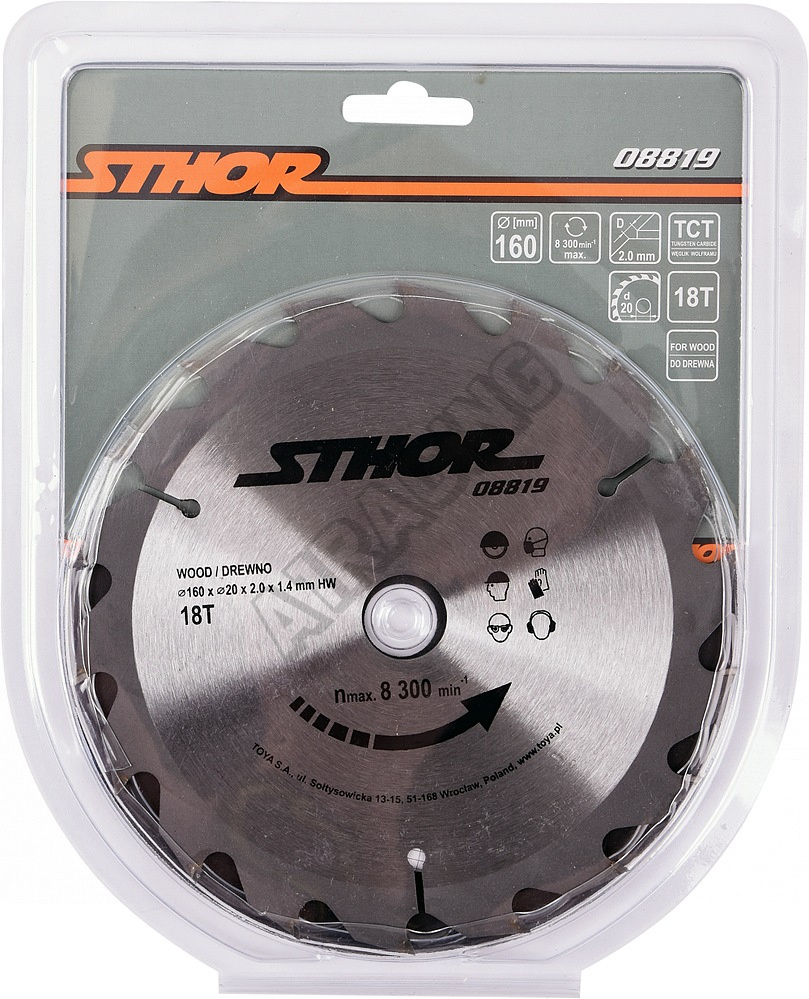 Technická data průměr kotouče 160 mm průměr otvoru 20 mm počet zubů 18 šíře řezu 2,0 mm šíře kotouče 1,4 mm max. povolené otáčky 8300 / min