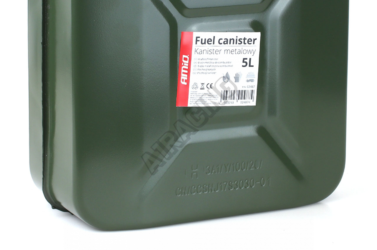 Kovový kanister určený na prepravu a skladovanie rôznych druhov kvapalín. Vyrobený z oceľového plechu, obojstranne práškovo lakovaný, vďaka čomu sa vyznačuje vysokou odolnosťou proti korózii a poveternostným vplyvom. Solídne prevedenie taktiež zaručuje vysokú odolnosť voči mechanickému poškodeniu. V sade pozinkovaná závlačka v tvare "L" ako dodatočné zabezpečenie a ochrana pred deťmi. Kanystr má certifikáciu UN, čo umožňuje bezpečné skladovanie všetkých palív, vrátane benzínu a nafty. Produkt je vybavený tesnením umiestneným pod uzáverom. Tesnenie zaručuje tesnosť kanistra.