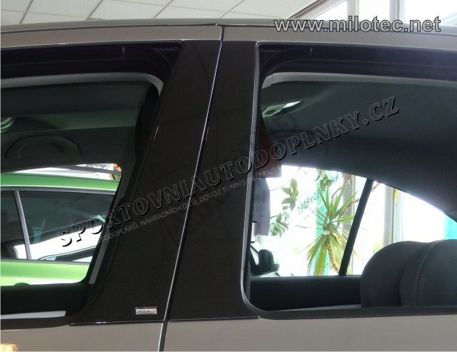 Šestidílná sada krytů bočních sloupků B a C je vyrobena z ABS černá metalíza. Kryty sloupků svým tmavým lesklým designem vozidlo opticky sníží a prodlouží (boční okna předních a zadních dveří se vizuálně spojí v jeden celek).