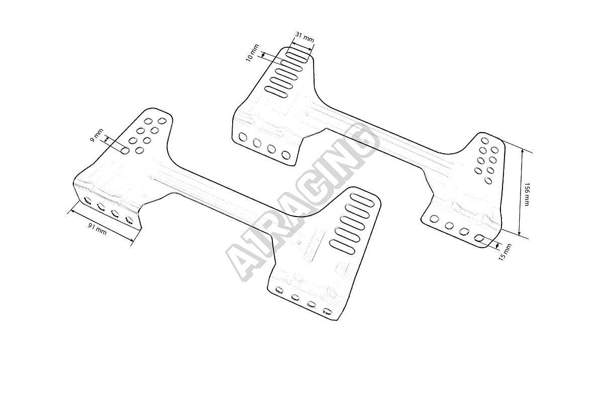 Sada obsahuje 2 úchyty, teda kompletnú sadu pre jedno kreslo. Upevnenie jednoduchej, spoľahlivej a pevnej konštrukcie vďaka dodatočným lisovaniam ovplyvňujúcim jej tuhosť. Produkt obsahuje montážne otvory. Je kompatibilný s montážnymi platformami pre BMW E30/E36/E46 predávanými na samostatnej aukcii.Upevnenia sú vyrobené z ocele o hrúbke 3 mm a vďaka ich tvaru vážia len 1,7 kg.
