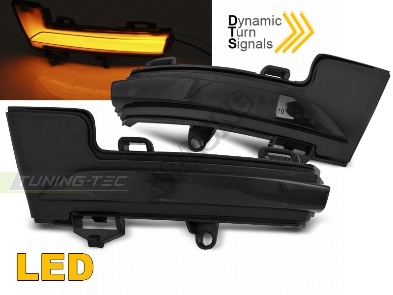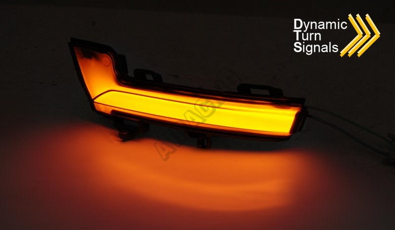 Bočné LED smerovky v zrkadlách vrátane dynamického prechodu oranžovej farby z jednej strany na druhú. 100% nové, kompletná sada (ľavá a pravá). Homologácia: štandard E4 - schválené pre prevádzku.