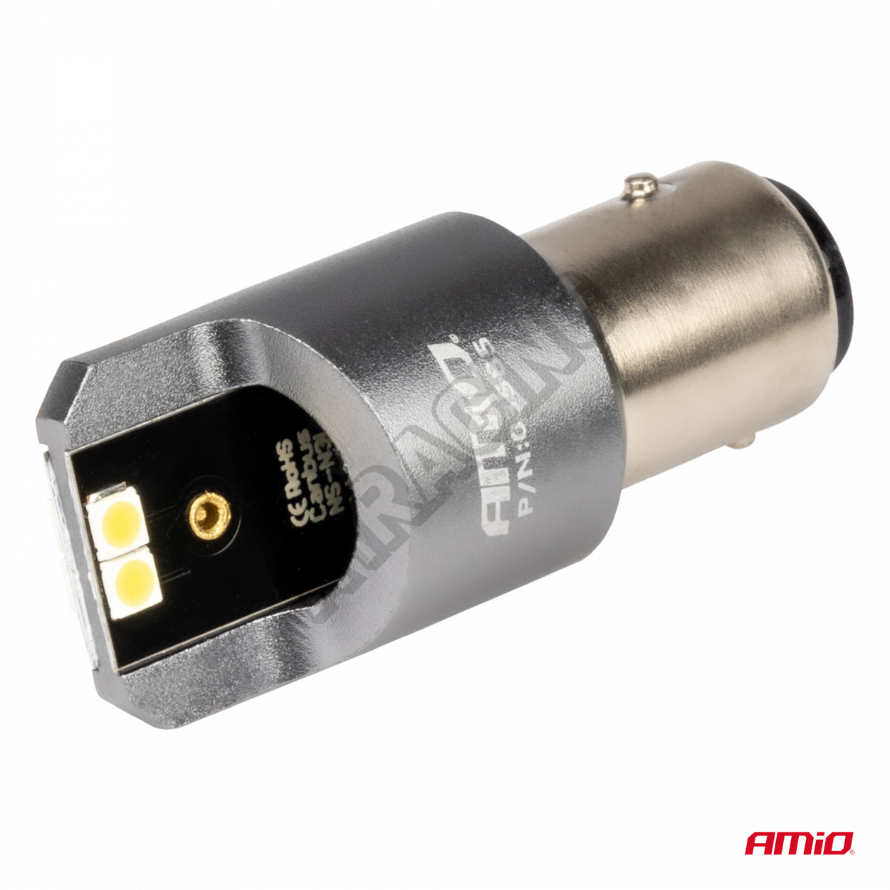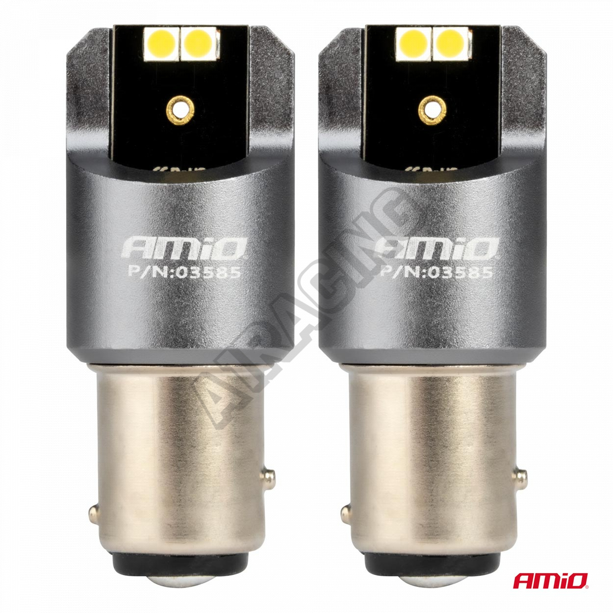Automobilové LED žiarovky značky AMiO sú moderným riešením využívajúcim technológiu LED diód. Použité diódy emitujú bielu farbu svetla a sú bez efektu blikania. Vysoká kvalita prevedenia zaručuje životnosť žiaroviek až 50 000 hodín a špeciálny napájací systém nevyžaduje úpravu elektrickej inštalácie v automobile, čo umožňuje bezproblémovú montáž v tradičných svietidlách, kde boli predtým používané bežné žiarovky.