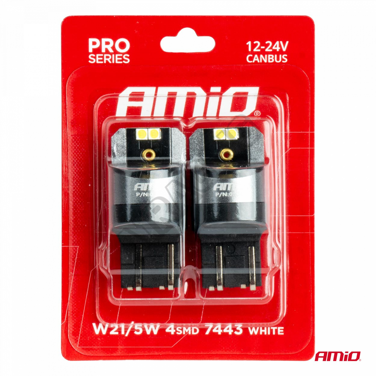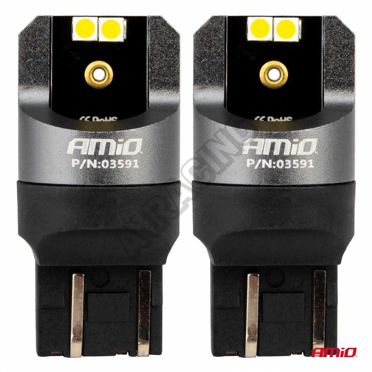 Automobilové LED žiarovky značky AMiO sú moderným riešením využívajúcim technológiu LED diód. Použité diódy emitujú bielu farbu svetla a sú bez efektu blikania. Vysoká kvalita prevedenia zaručuje životnosť žiaroviek až 50 000 hodín a špeciálny napájací systém nevyžaduje úpravu elektrickej inštalácie v automobile, čo umožňuje bezproblémovú montáž v tradičných svietidlách, kde boli predtým používané bežné žiarovky.