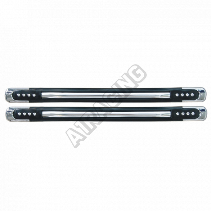 Lišty na nárazníky: Připevnění pomocí lepící pásky. Rozměry: 440 x 35 mm. Pryžový, pružný materiál. Balení- 2 kusy.