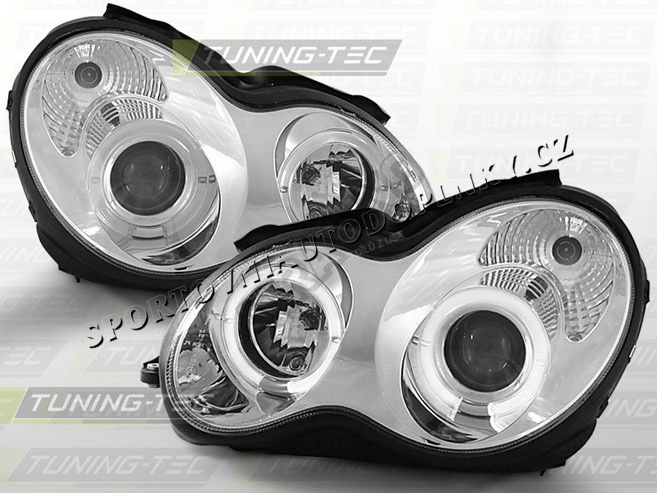 MERCEDES W 203 C-KLASA 2000-04 PŘEDNÍ ČÍRÁ SVĚTLA ANGEL EYES CHROME (LPME33) - cena za pár 2 ks, ty