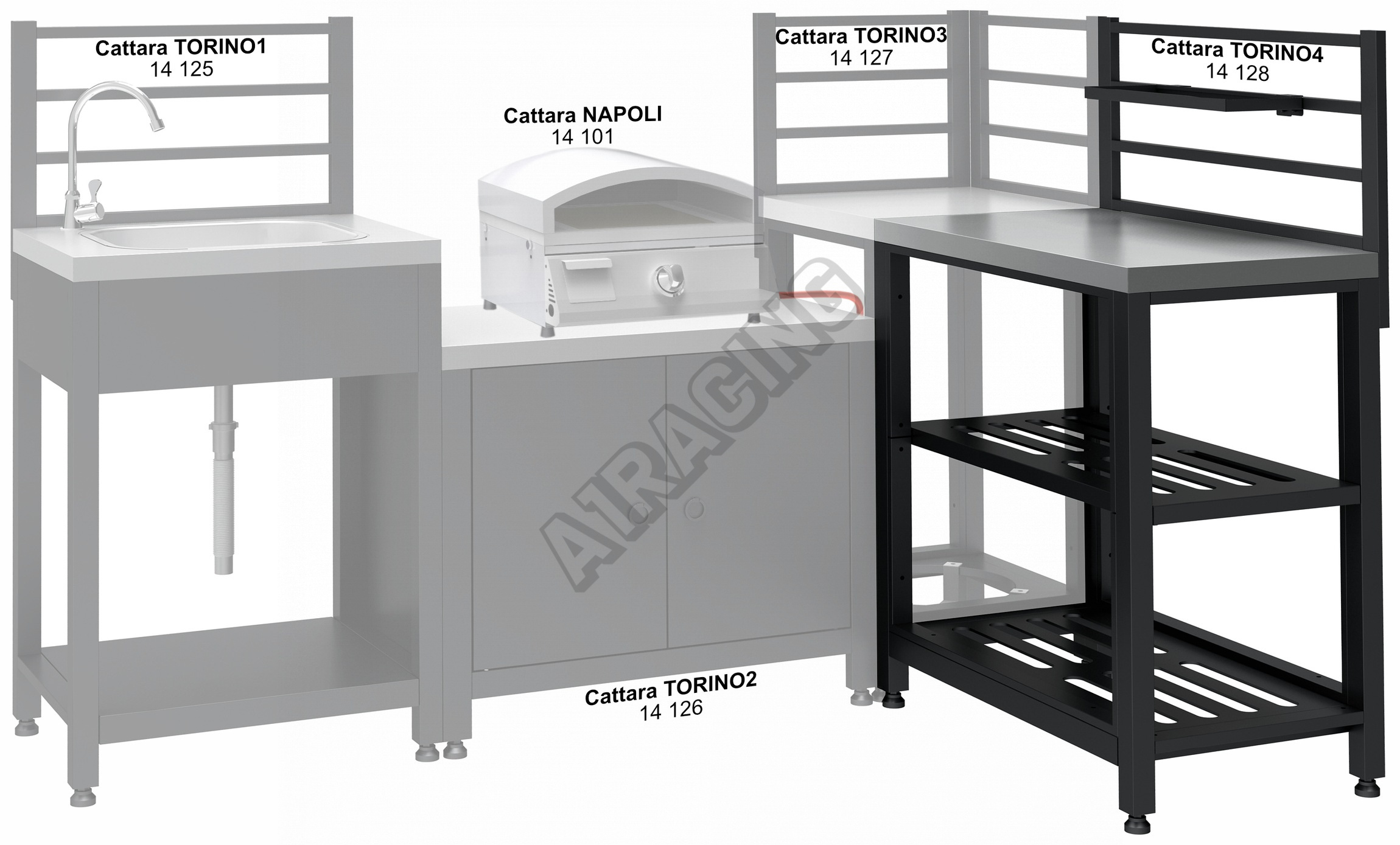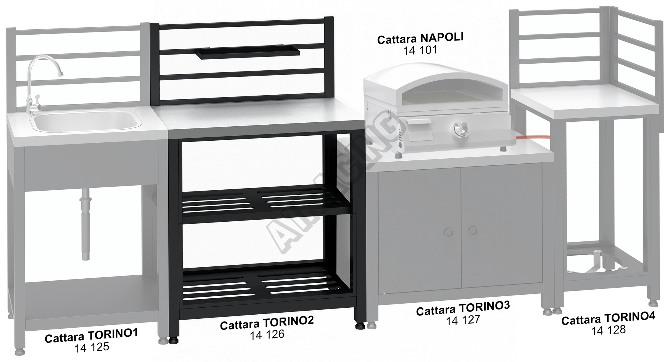 TORINO 4 je jeden z modulů systému Cattara TORINO a nabízí rozměrný pracovní prostor pro přípravu pokrmů a rovněž odkládací poličky.