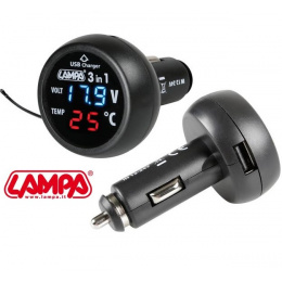 Tento kvalitný jednoduchý merač talianskeho výrobcu Lampa jednoducho zasuniete do zapaľovača a bude vám merať vnútornú teplotu v aute, kontrolovať stav autobatérie a máte možnosť tu ešte cez USB zapojiť akejkoľvek el. zariadení.