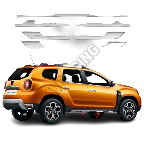 Nerez chrom lišty bočných prahov Dacia Duster 2018+Off-Road style Omtec (matné)