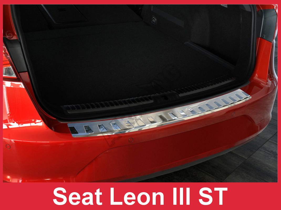Nerez kryt- ochrana prahu zadného nárazníka Seat Leon III 5F ST 2013-16 Tento nerez kryt zadného nár